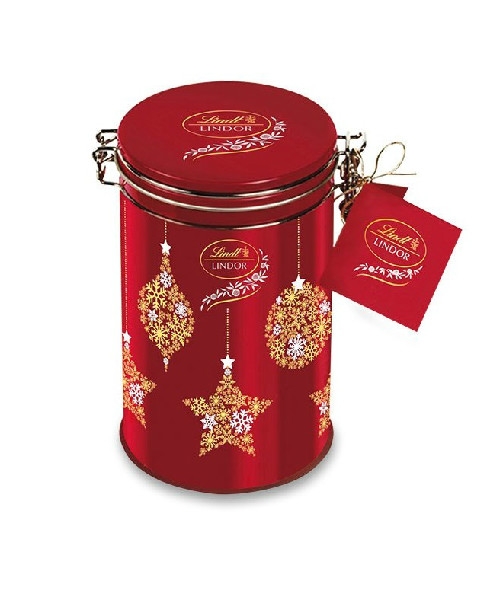Pralinky Lindor ve vánoční dóze z neodolatelně jemné mléčné čokolády s jemnou tekutou čokoládovou náplní (44%).